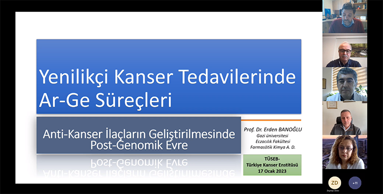 On 17 January 2023, “R&D Processes in Innovative Cancer Treatments” Seminar was held online by TÜSEB Türkiye Cancer Institute. Prof. Erden Banoğlu, Pharm. Çiğdem Şahinbaş Yılmaz and Prof. Ahmet Sezer took part respectively as speakers in the event held in 3 sessions, which was moderated by Prof. Mahmut Gümüş and Prof. Uygar Halis Tazebay from TÜSEB Türkiye Cancer Institute.