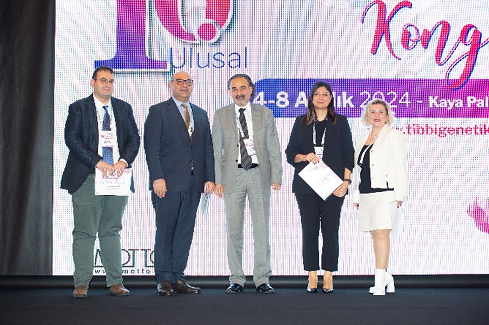 Tıbbi Genetik Derneği tarafından 4-8 Aralık 2024 tarihleri arasında Antalya'da düzenlenen 16. Uluslararası Katılımlı Ulusal Tıbbi Genetik Kongresi’nde, Türkiye Ulusal Genom ve Biyoinformatik Projesi'nin sunumu yapıldı. TÜSEB adına Türkiye Kanser Enstitüsü araştırmacılarından Doç. Dr. Demet Akdeniz Ödemiş, bu önemli projeyi tanıtmak üzere kongreye konuşmacı olarak katılım sağladı. Kongrenin ikinci gününde, yakın zamanda kaybettiğimiz değerli bilim insanı Prof. Dr. Sevim Balcı anısına düzenlenen "Genetik Tanıdan Halk Sağlığına: Sevim Balcı Oturumu" na Sevim Balcı hocamızın anılmasıyla başlanmıştır. Prof. Dr. Selman Yıldırım ve Doç. Dr. Özlem Sezer moderatörlüğünde gerçekleştirilen bu özel oturumda, Doç. Dr. Demet Akdeniz Ödemiş, Türkiye Ulusal Genom ve Biyoinformatik Projesi ile ilgili son verileri paylaşarak projeye dair yapılan çalışmalar hakkında bilgi verdi. Özellikle Kanser Genom Projeleri ile kanser tedavisinde daha etkili ve hedefe yönelik yöntemlerin geliştirilmesi konusunda önemli adımlar attıklarını ve kişiselleştirilmiş tıp yaklaşımının temelini güçlendirmeye devam ettiklerini vurguladı.