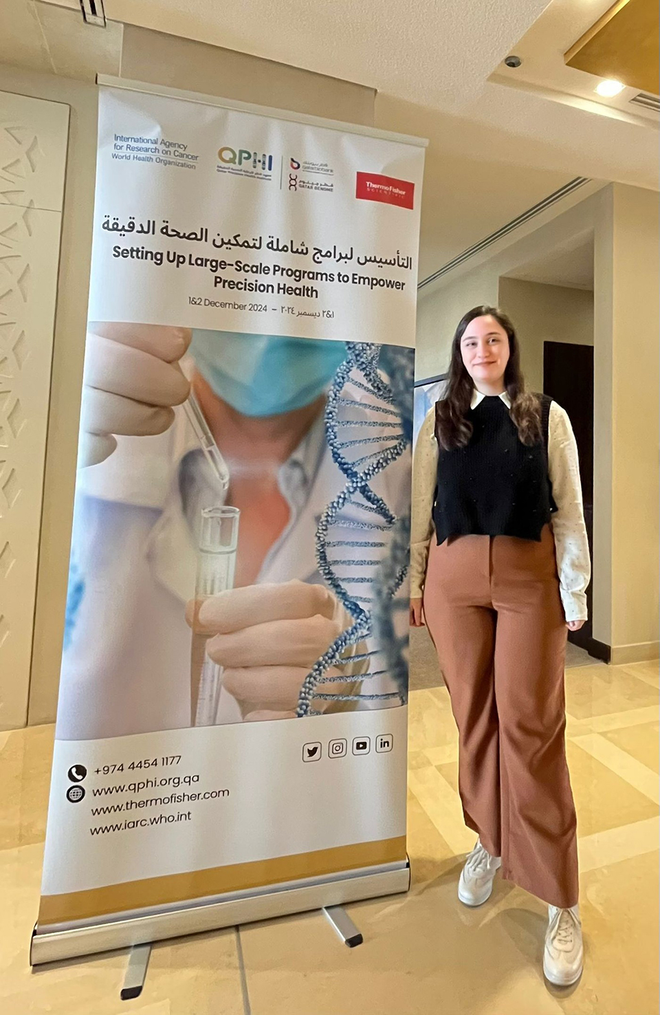 Qatar Precision Health Institute (QPHI), Uluslararası Kanser Araştırma Ajansı (IARC/WHO) ve Thermo Fisher Scientific iş birliğiyle, 1-2 Aralık 2024 tarihlerinde Katar’ın Doha şehrinde “Hassas Sağlık ve Prediktif Genomik Alanında Büyük Ölçekli Programlar Kurulması” başlıklı çalıştay düzenlendi. TÜSEB-Türkiye Kanser Enstitüsü’nde Ar-Ge Uzmanı olarak görev yapan İpek BEDİR’in katılım sağladığı çalıştayda hassas tıp uygulamaları, ulusal genom projeleri ve kişiye özel tedavi yöntemleri gibi konular ele alındı. Hassas sağlık için genomik verilerin kullanımı, hasta odaklı sonuçlar elde etmek için nüfusa dayalı kohort çalışmaları ve hassas sağlık alanında güçlü biyobankacılık altyapısının öneminin ana başlıkta yer aldığı çalıştayda özellikle biyobankacılık ve laboratuvar altyapısının geliştirilmesi ile prediktif genomik programların kurulmasına odaklanıldı.