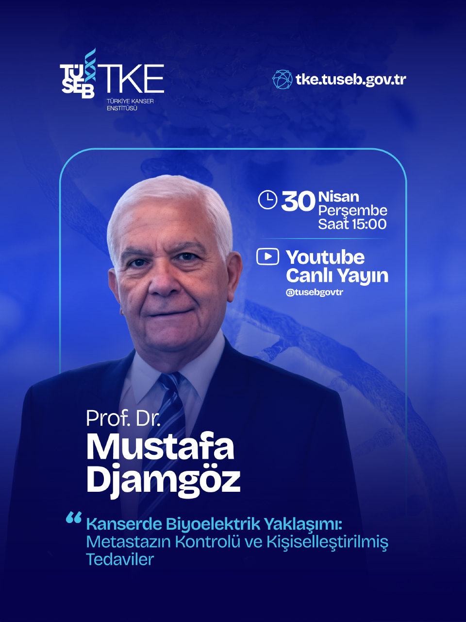 TÜSEB YouTube kanalı üzerinden gerçekleştirilecek canlı yayında, Prof. Dr. Mustafa Djamgöz kanser araştırmalarında biyoelektrik yaklaşımını ve kanser hücrelerinin metastaz yapma yeteneklerini nasıl kazandığını detaylandıracaktır. Özellikle agresif kanser hücrelerinin bu özellikleri üzerinden nasıl kontrol edilebileceği ve yeni tedavi stratejileri konularındaki tecrübelerini aktaracaktır.