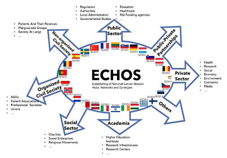 Özetle, ECHoS, Ulusal Kanser Misyonu Merkezleri’nin üye devletler ve asosiye ülkelerde misyonu kanser savunucuları olmaları için koşullar yaratacak ve ikinci bir aşamada uluslararası bir Ulusal Kanser Misyonu Merkezleri ağının gelişimine hız kazandıracaktır.